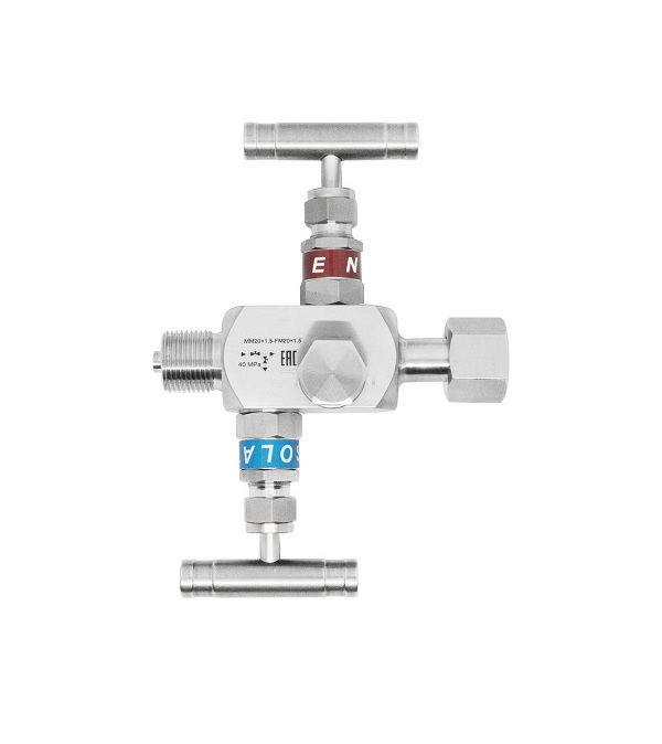 Двухвентильный игольчатый клапан применяется в качестве запорного или регулирующего механизма для подключения измерительных приборов (датчиков давления, манометров и других средств измерений) к импульсным и технологическим линиям с давлением до 40 МПа. Устройство состоит из корпуса и двух управляющих вентилей с затвором игольчатого типа, которые выполнены из нержавеющей стали. Изолирующий вентиль перекрывает доступ рабочей среды к прибору. Дренажный вентиль, установленный ниже по потоку, обеспечивает дренаж остаточной среды и сброс давления в полости клапана, что необходимо в случае демонтажа прибора, или его технического обслуживания без остановки процесса на производственной магистрали. Установленный двухвентильный клапан на магистрали отвечает требованиям техники безопасности при работе с агрессивными средами и сокращает потери рабочей среды.