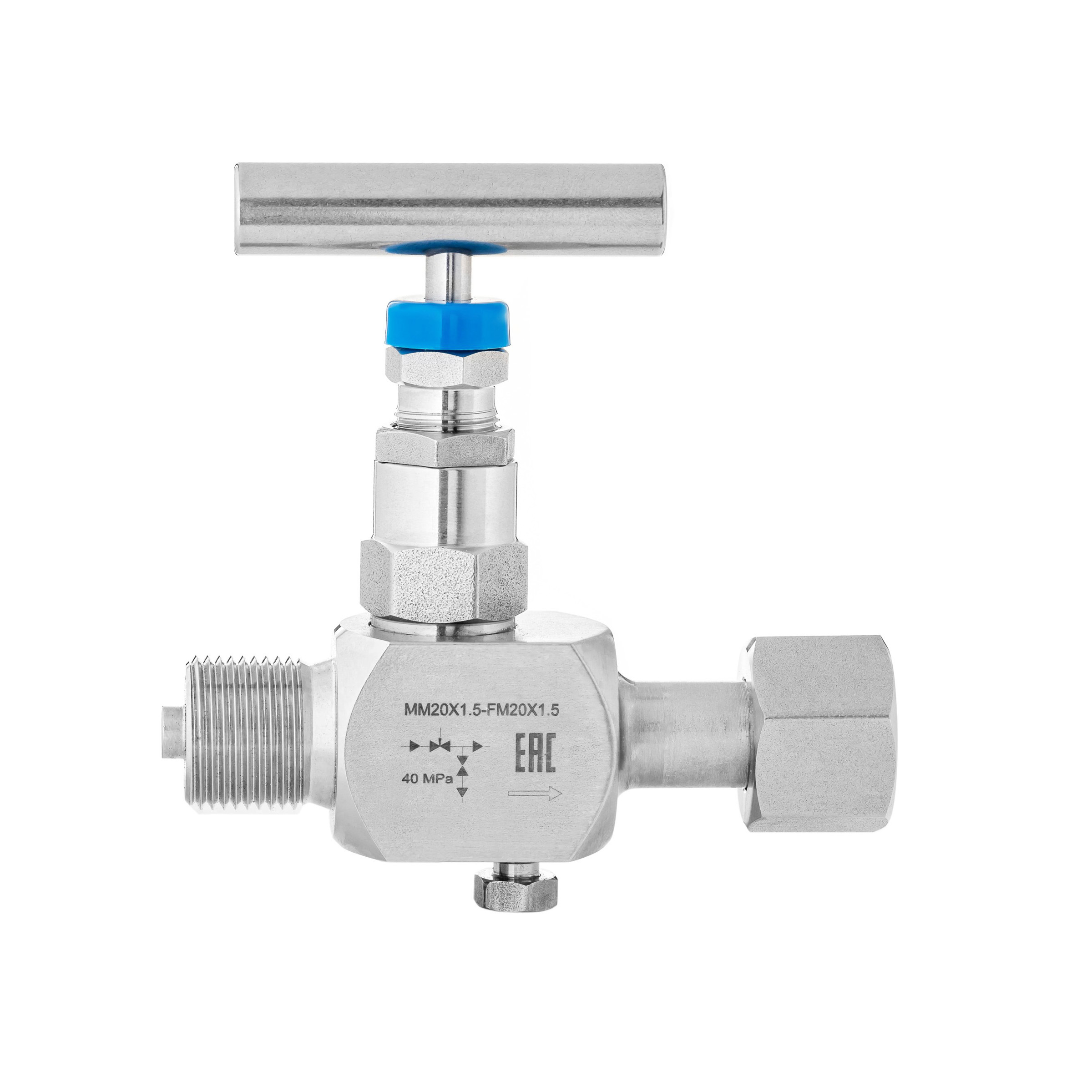 Одновентильный игольчатый клапан – это запорное устройство, которое предназначено для плавного частичного или полного перекрытия потока рабочей среды с максимальным рабочим давлением до 40 МПа. Клапан позволяет осуществлять монтаж манометров, датчиков и реле давления, а также других приборов КИПиА без остановки технологического процесса и сброса давления на различных трубопроводных и производственных линиях. При этом наличие винта для сброса давления в корпусе клапана обеспечивает надежную защиту прибора при его замене. Фторопластовый сальник служит гарантией плотной фиксации штока и перекрытия проходного сечения канала в корпусе клапана. Материал изготовления запорного клапана и игольчатого золотника – нержавеющая сталь, поэтому устройство может использоваться при работе с агрессивными жидкими и газообразными средами.