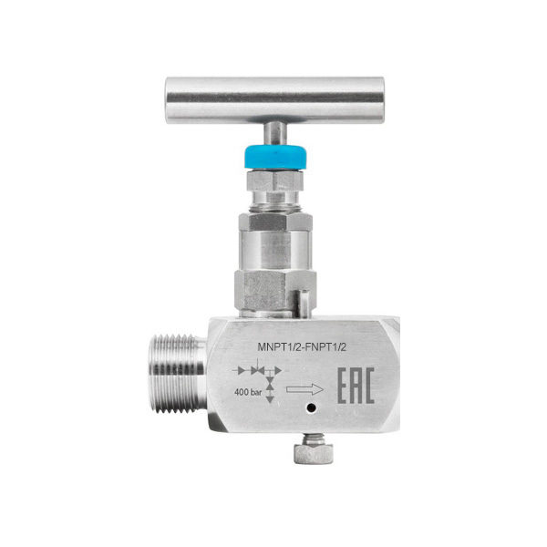 Одновентильный игольчатый клапан – это запорное устройство, которое предназначено для плавного частичного или полного перекрытия потока рабочей среды с максимальным рабочим давлением до 40 МПа. Клапан позволяет осуществлять монтаж манометров, датчиков и реле давления, а также других приборов КИПиА без остановки технологического процесса и сброса давления на различных трубопроводных и производственных линиях. При этом наличие винта для сброса давления в корпусе клапана обеспечивает надежную защиту прибора при его замене. Фторопластовый сальник служит гарантией плотной фиксации штока и перекрытия проходного сечения канала в корпусе клапана. Материал изготовления запорного клапана и игольчатого золотника – нержавеющая сталь, поэтому устройство может использоваться при работе с агрессивными жидкими и газообразными средами.