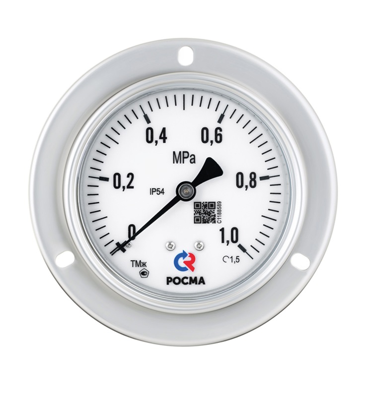 МАНОМЕТР железнодорожный 100мм, Тип – ТМж-520ТЭ, эксцентрическое присоединение. Передний фланец. 0-1MPa. Резьба М20х1,5. Класс точности 1,5. Белая шкала. Напряжение питания подсветки W.75 DC