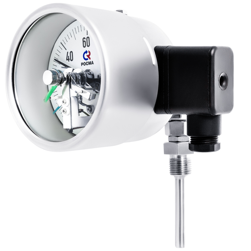 Тип БТ, серия 220. Коррозионностойкий термометр с электроконтактной приставкой и универсальным присоединением (поворотно-откидным корпусом) с резьбой на штоке. Биметаллический термометр, устойчивый к воздействию агрессивных измеряемых сред; предназначен для управления внешними электрическими цепями в схемах сигнализации, автоматики и блокировки технологических процессов. Корпус и шток коррозионностойкого термометра изготовлены из нержавеющей стали. Возможна комплектация гильзой из нержавеющей стали с давлением до 25 МПа или до 60 МПа.